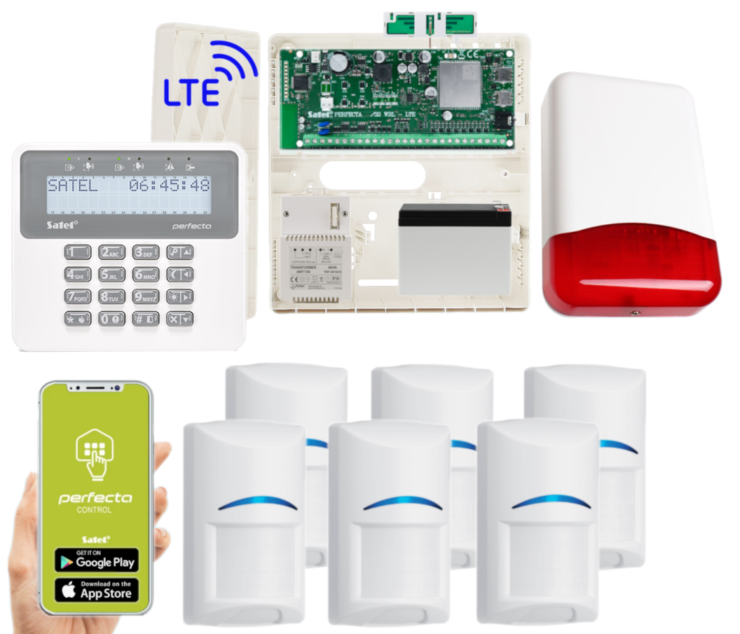 - 1x centrala alarmowa Satel Perfecta 32 LTE wraz z akcesoriami;