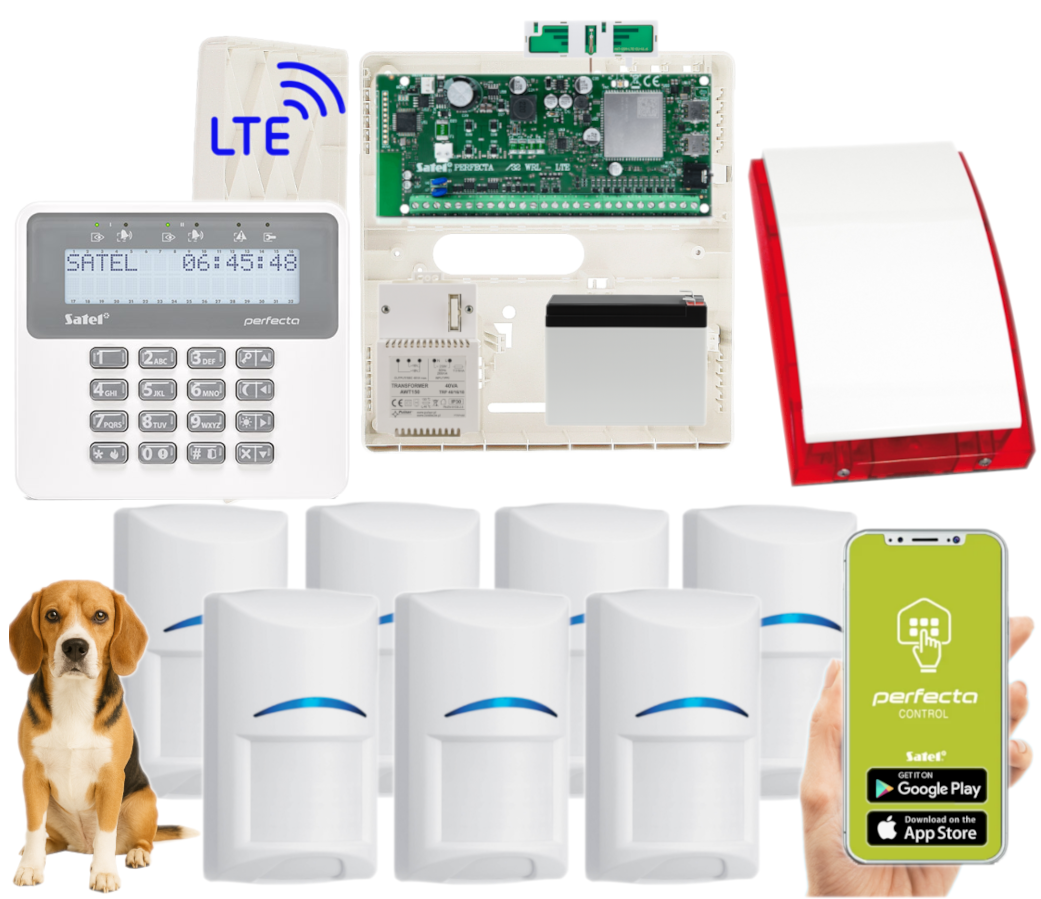 - 1x centrala alarmowa Satel Perfecta 32 LTE wraz z akcesoriami;