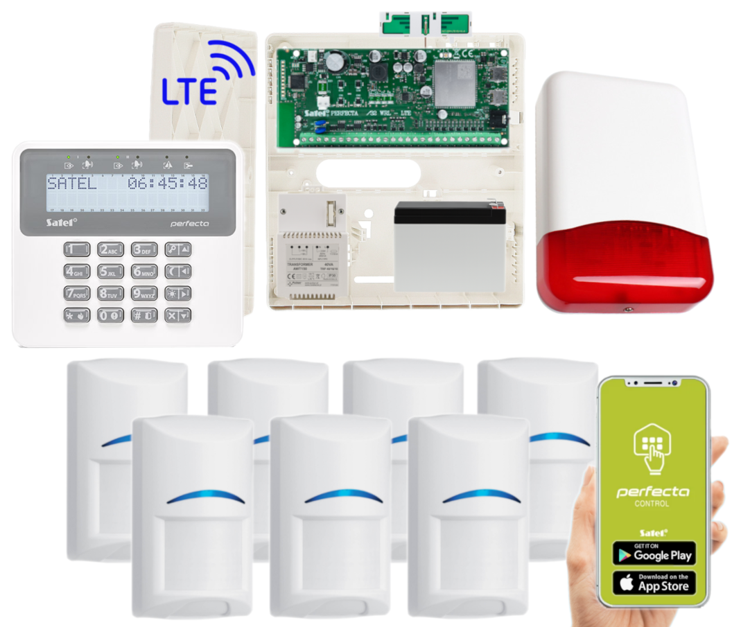 - 1x centrala alarmowa Satel Perfecta 32 LTE wraz z akcesoriami;
