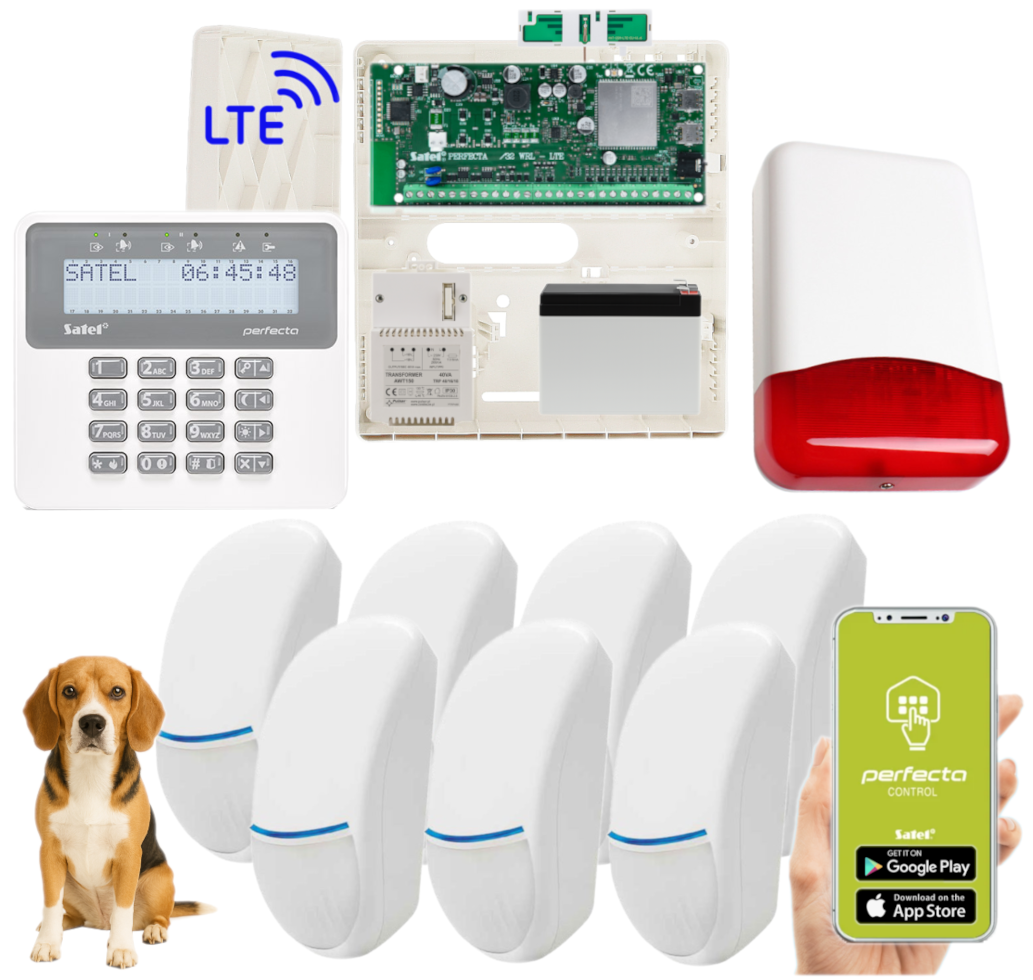 - 1x centrala alarmowa Satel Perfecta 32 LTE wraz z akcesoriami;