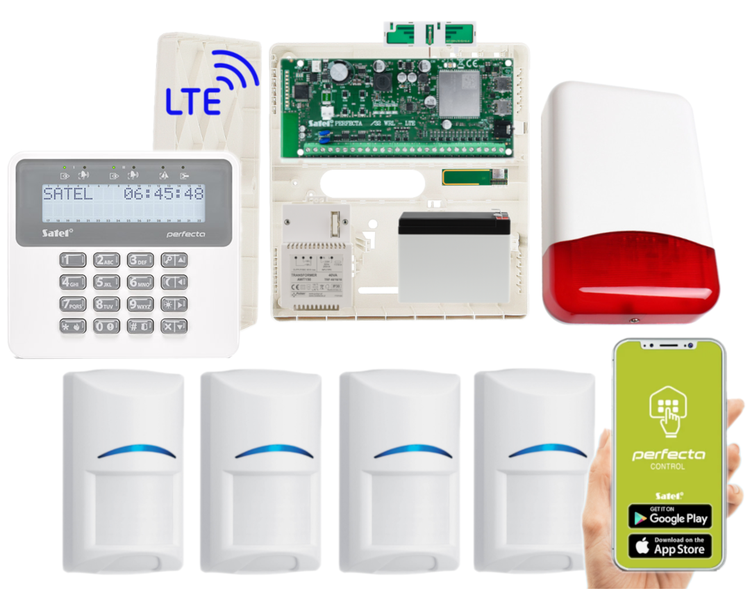 - 1x centrala alarmowa Satel Perfecta 32 LTE wraz z akcesoriami;