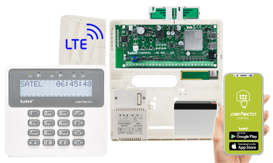 - 1x centrala alarmowa Satel Perfecta 32 LTE wraz z akcesoriami;