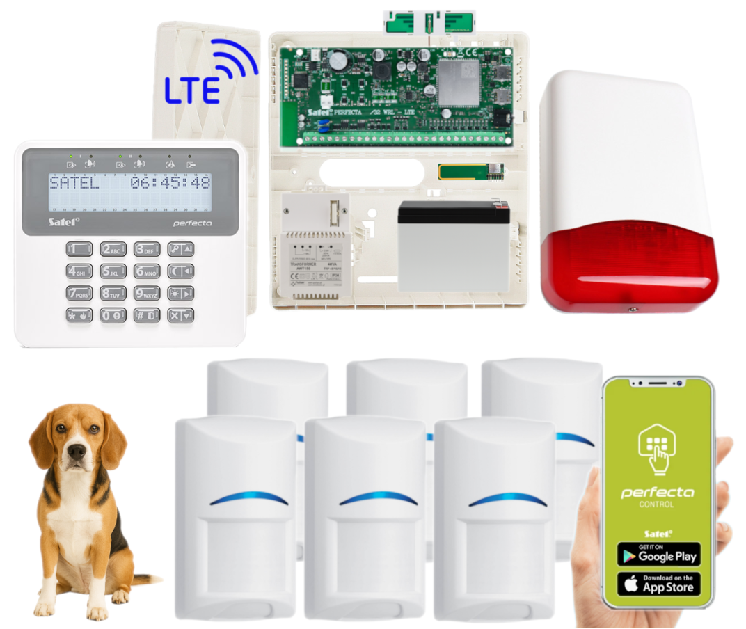 - 1x centrala alarmowa Satel Perfecta 32 LTE wraz z akcesoriami;