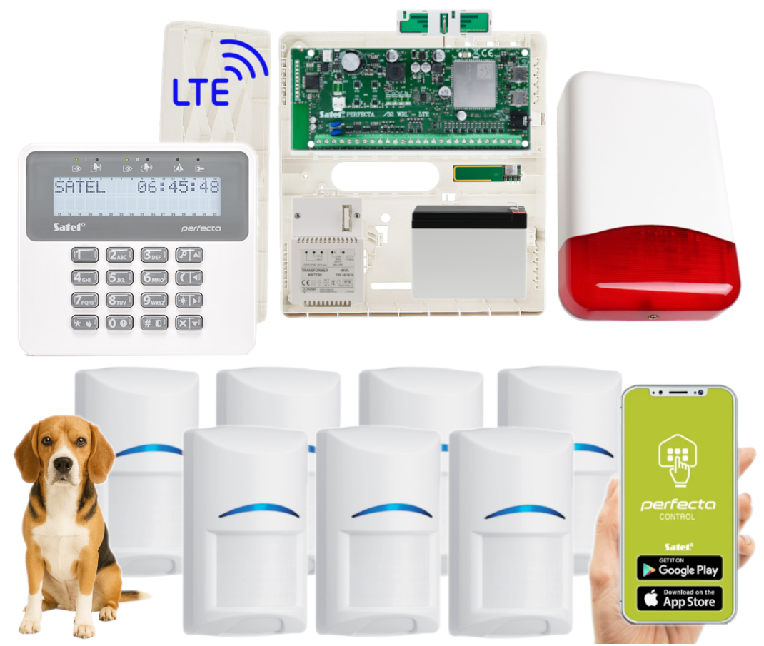 - 1x centrala alarmowa Satel Perfecta 32 LTE wraz z akcesoriami;