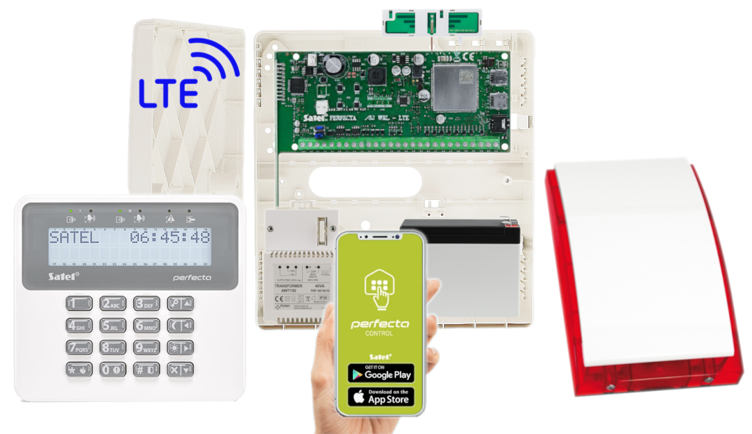 - 1x centrala alarmowa Satel Perfecta 32-WRL LTE wraz z akcesoriami;