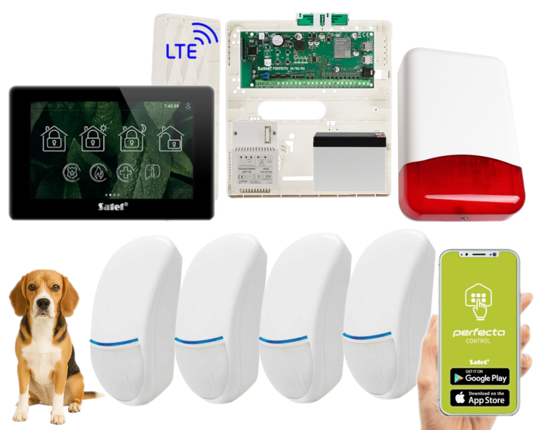 - 1x centrala alarmowa Satel Perfecta 64 M z akcesoriami;