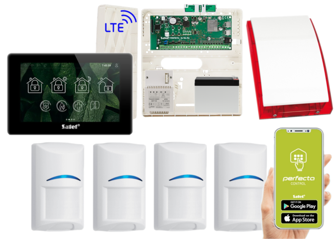 - 1x centrala alarmowa Satel Perfecta 64 M z akcesoriami;