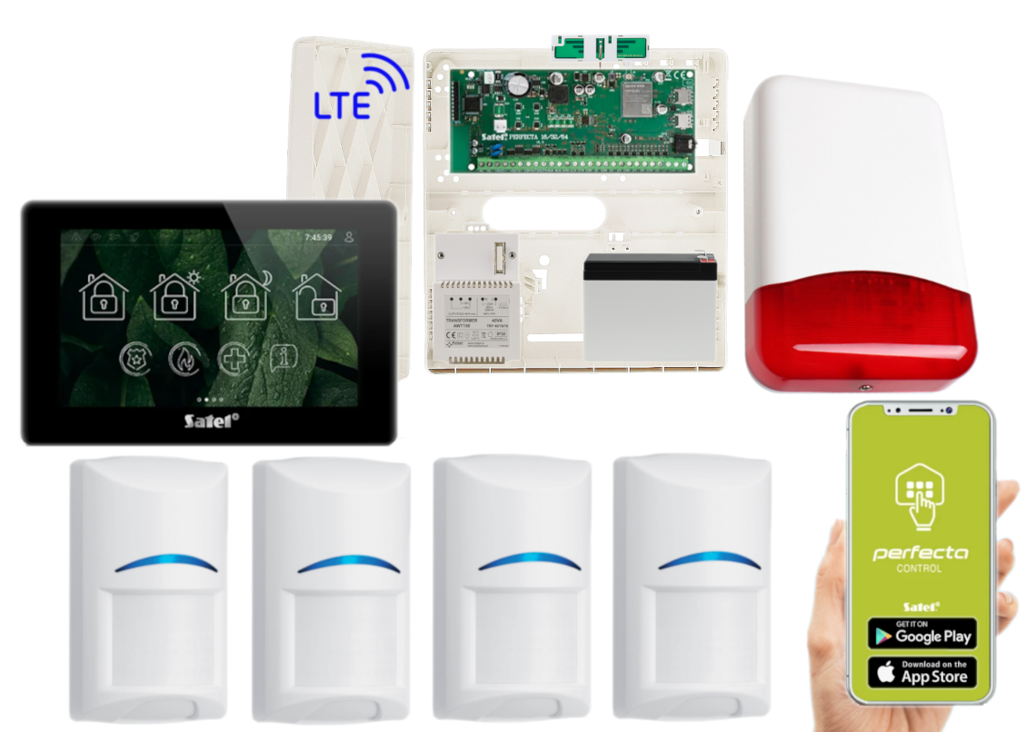 - 1x centrala alarmowa Satel Perfecta 64 M z akcesoriami;