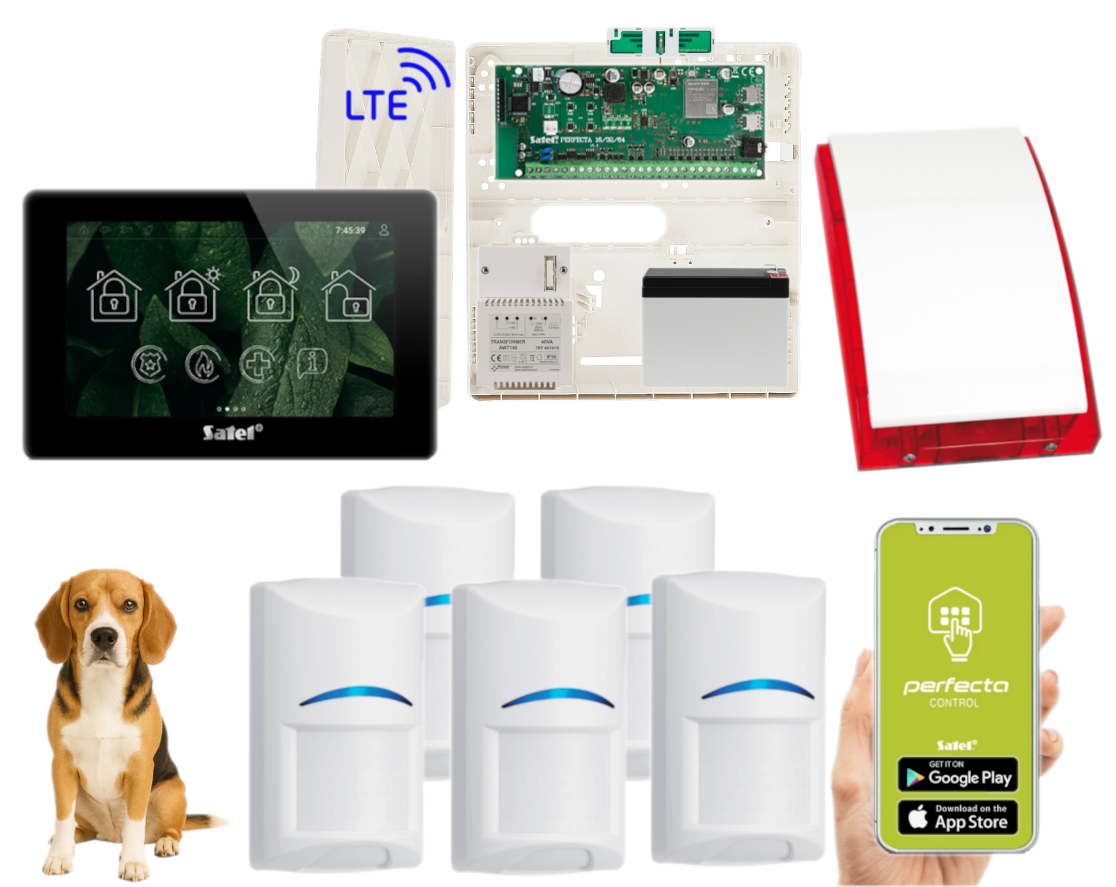 - 1x centrala alarmowa Satel Perfecta 64 M z akcesoriami;