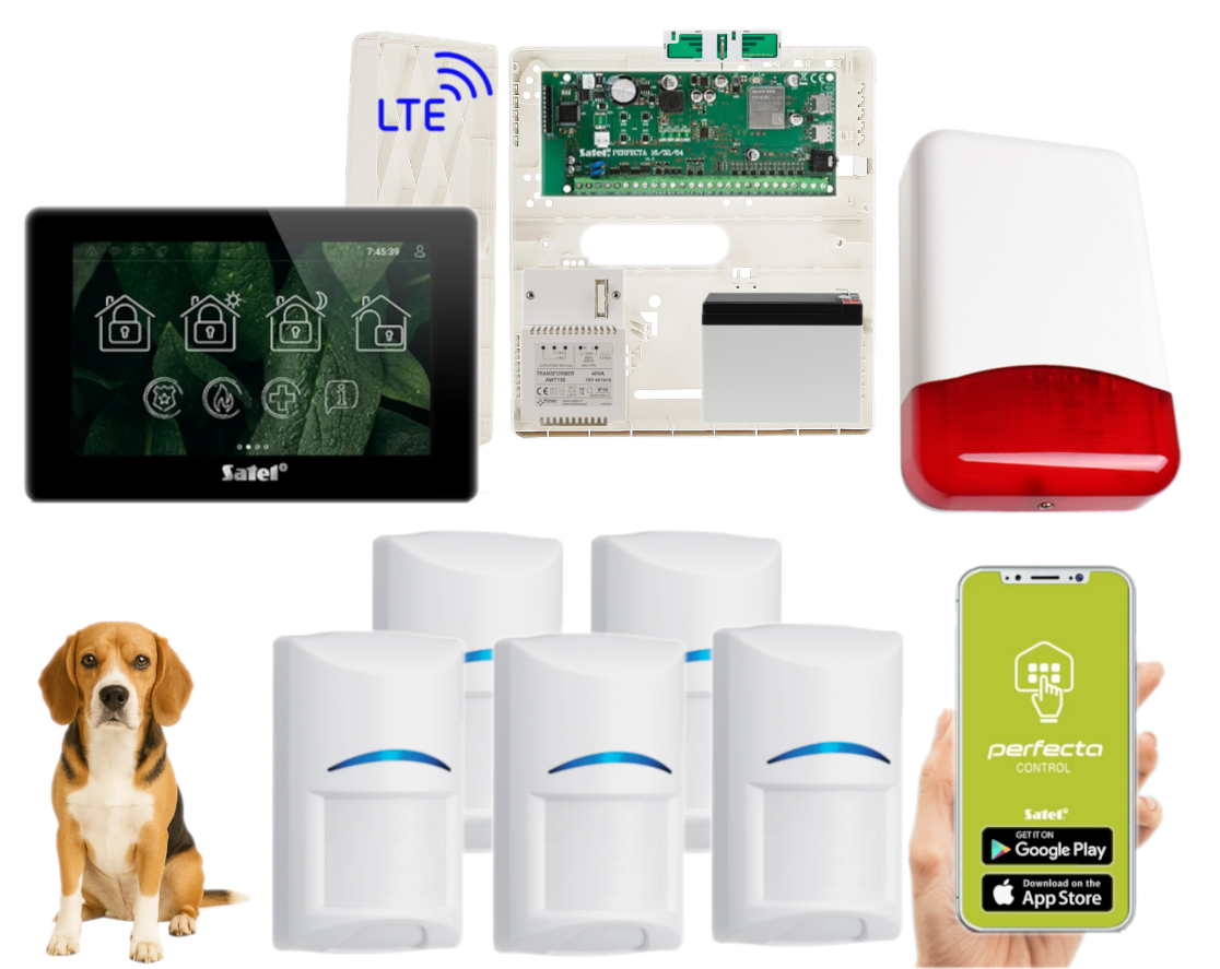 - 1x centrala alarmowa Satel Perfecta 64 M z akcesoriami;