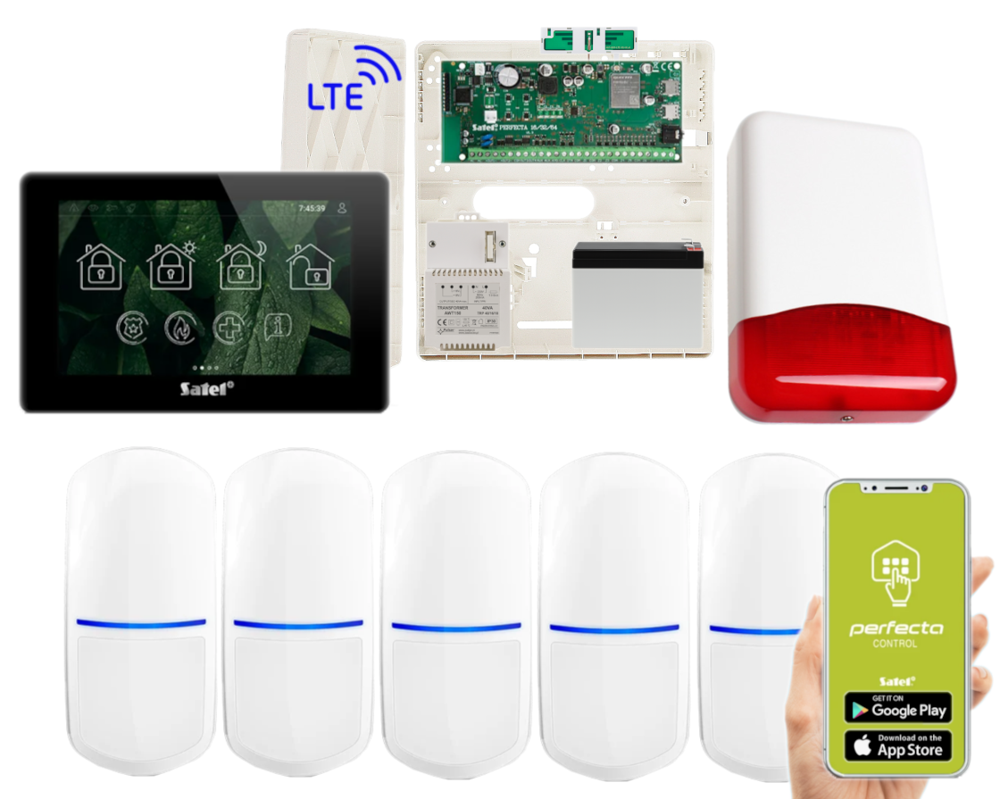 - 1x centrala alarmowa Satel Perfecta 64 M z akcesoriami;