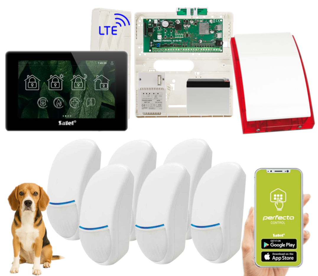 - 1x centrala alarmowa Satel Perfecta 64 M z akcesoriami;