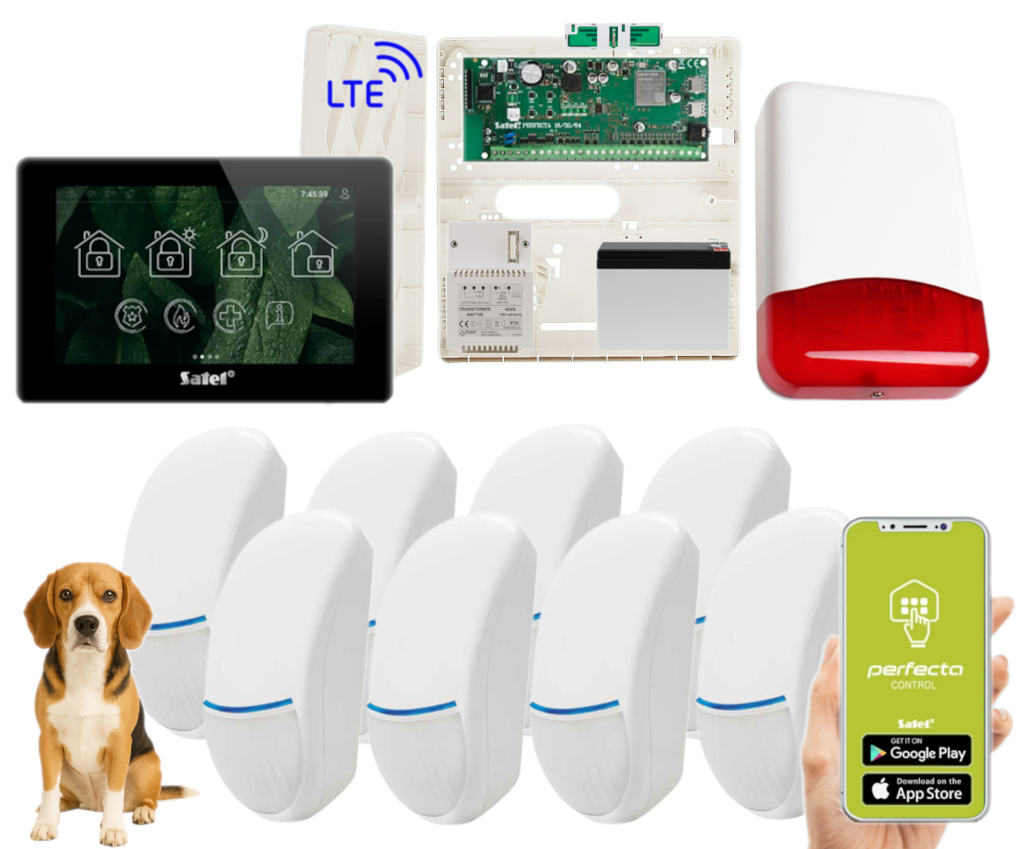 - 1x centrala alarmowa Satel Perfecta 64 M z akcesoriami;