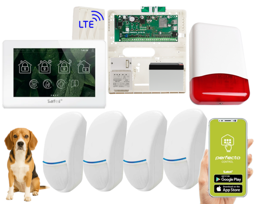 - 1x centrala alarmowa Satel Perfecta 64 M z akcesoriami;
