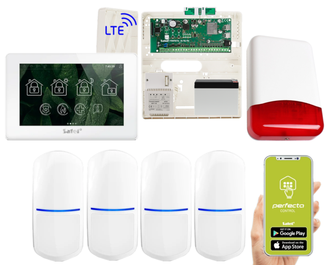 - 1x centrala alarmowa Satel Perfecta 64 M z akcesoriami;