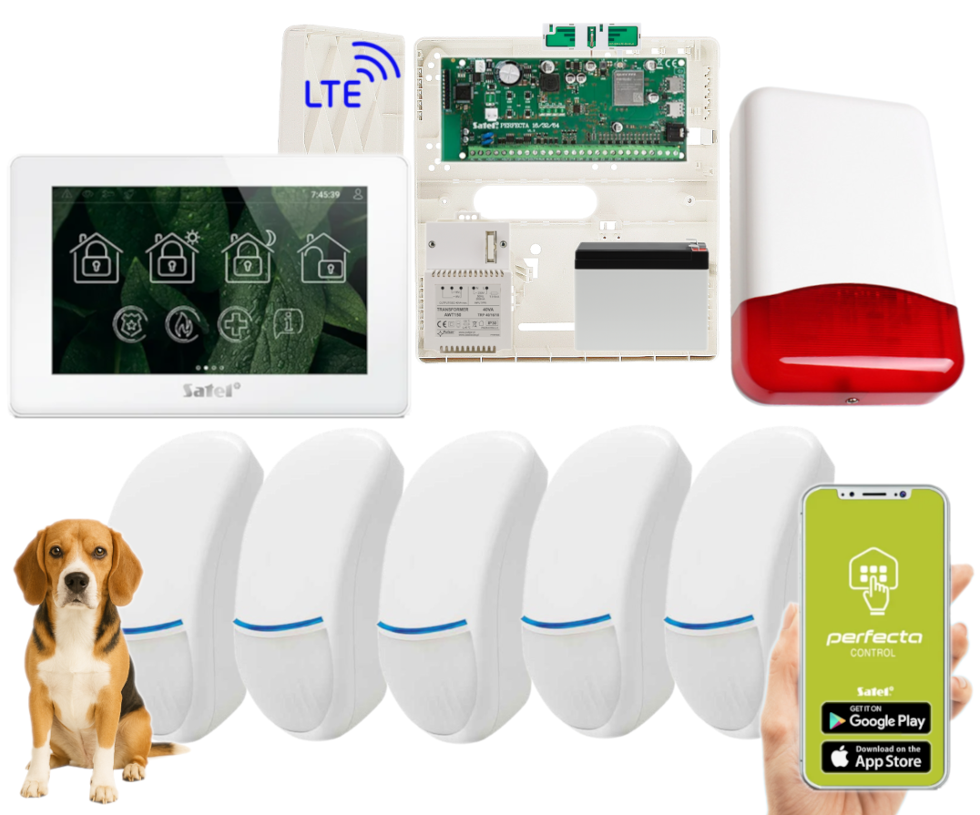 - 1x centrala alarmowa Satel Perfecta 64 M z akcesoriami;