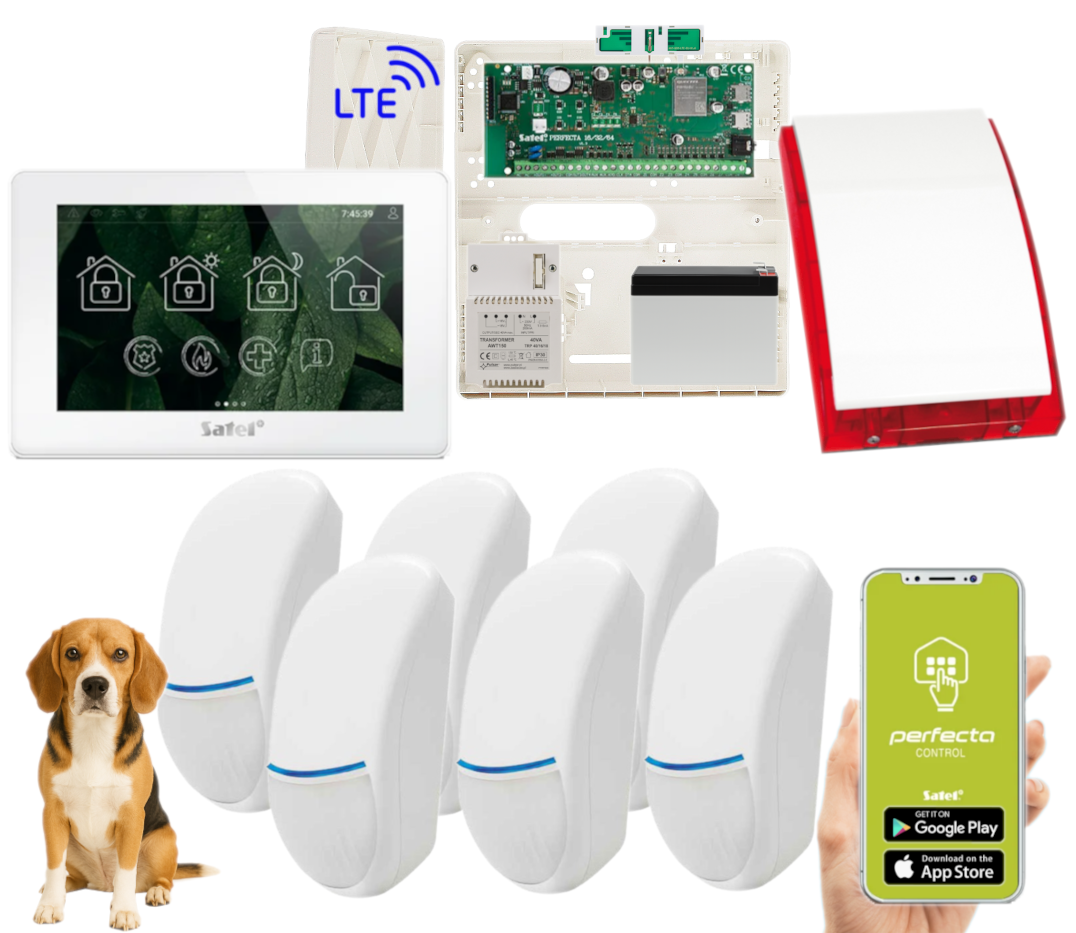- 1x centrala alarmowa Satel Perfecta 64 M z akcesoriami;