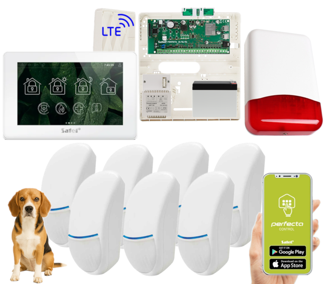 - 1x centrala alarmowa Satel Perfecta 64 M z akcesoriami;