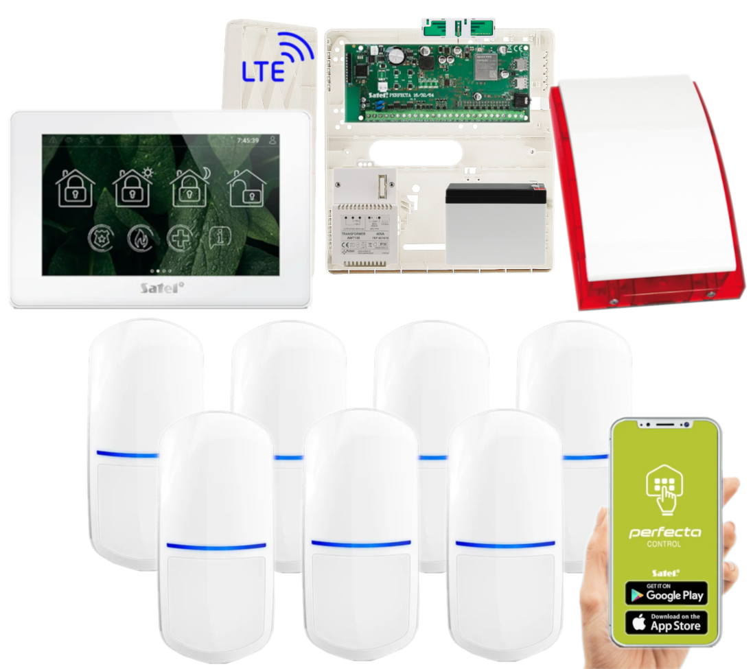 - 1x centrala alarmowa Satel Perfecta 64 M z akcesoriami;