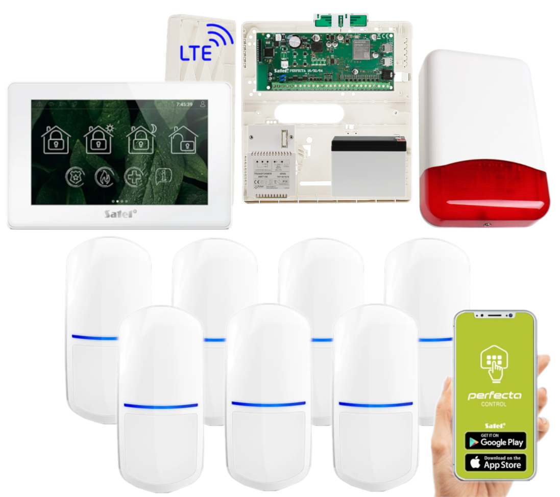 - 1x centrala alarmowa Satel Perfecta 64 M z akcesoriami;