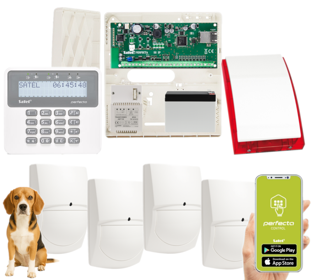 - 1x centrala alarmowa Satel Perfecta-IP 32;
