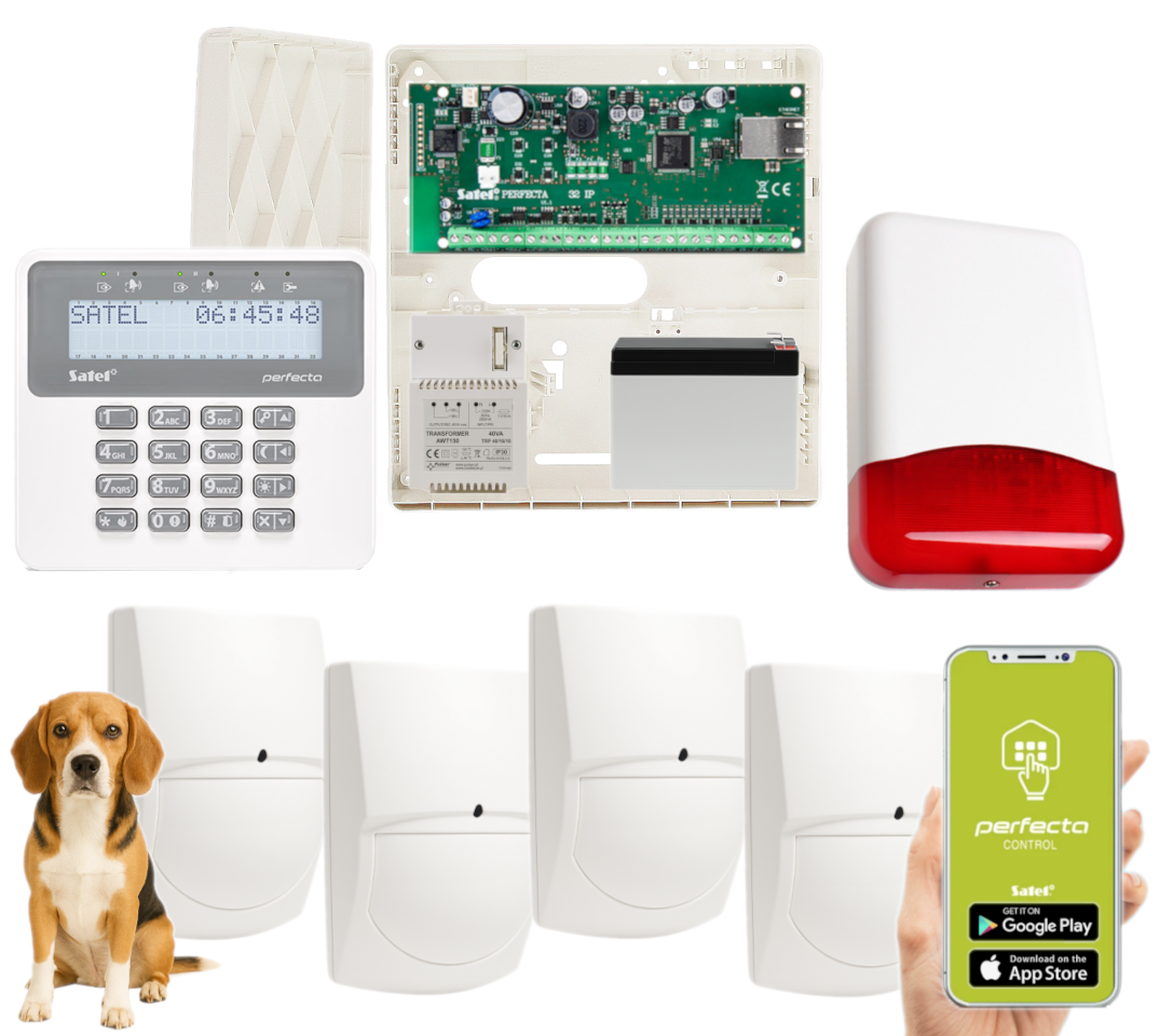 - 1x centrala alarmowa Satel Perfecta-IP 32;