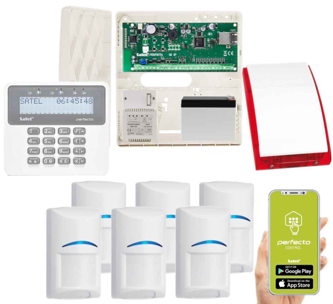 - 1x centrala alarmowa Satel Perfecta-IP 32;
