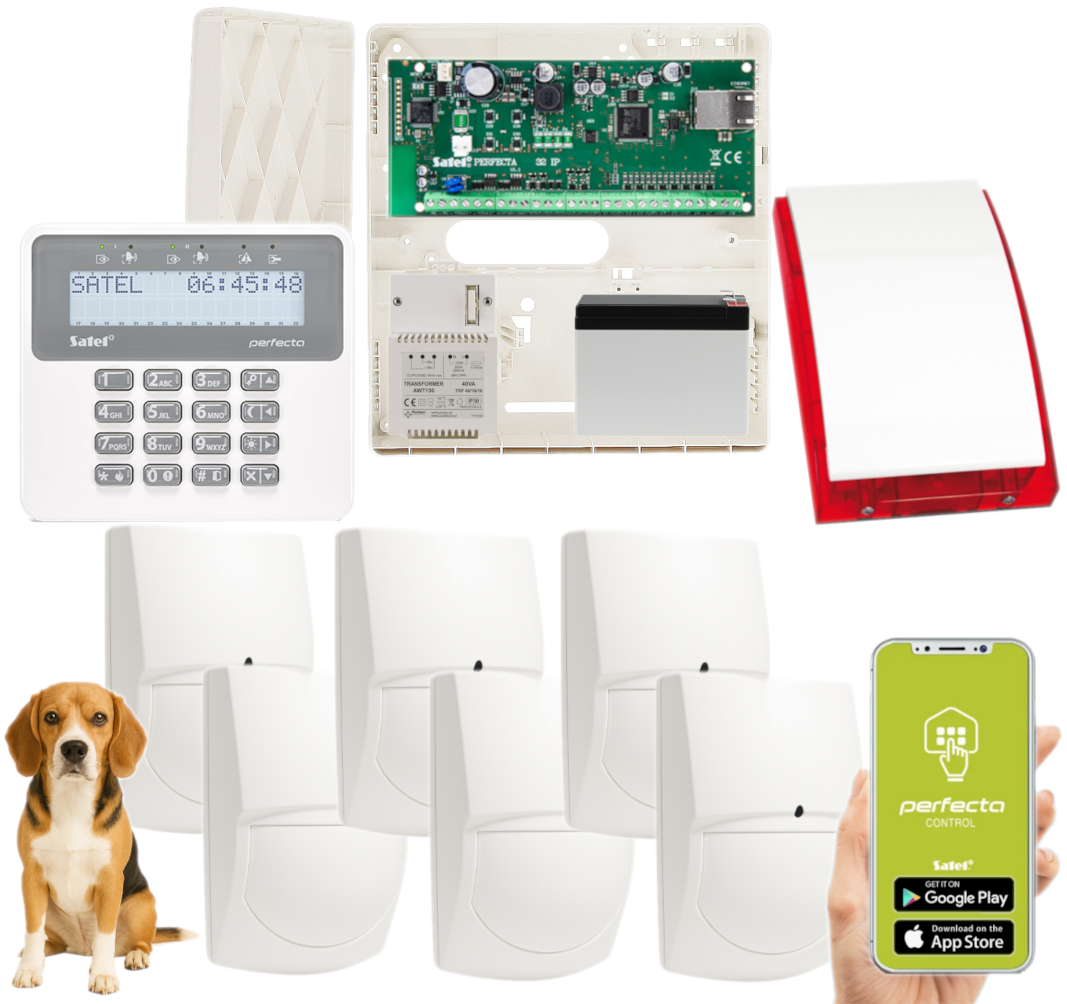 - 1x centrala alarmowa Satel Perfecta-IP 32;