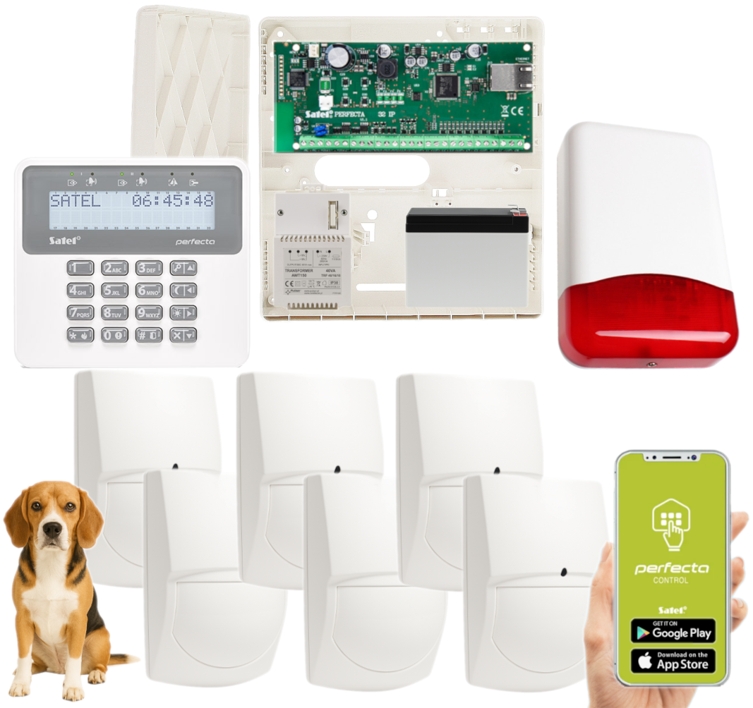 - 1x centrala alarmowa Satel Perfecta-IP 32;