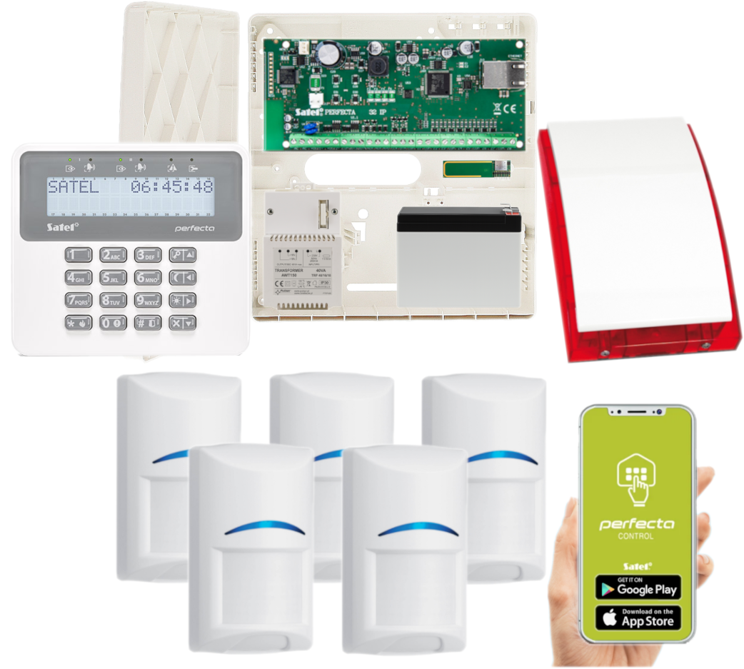 - 1x centrala alarmowa Satel Perfecta-IP 32;