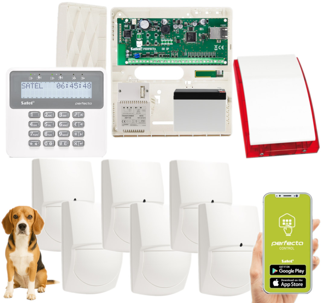 - 1x centrala alarmowa Satel Perfecta-IP 32;