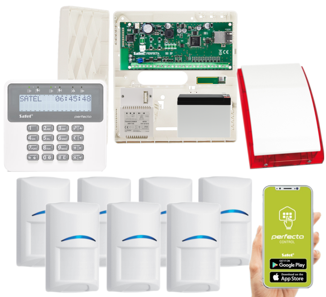 - 1x centrala alarmowa Satel Perfecta-IP 32;