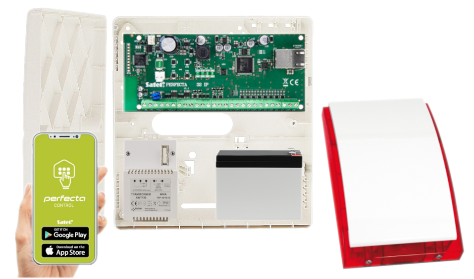 - 1x centrala alarmowa Satel Perfecta-IP 32;
