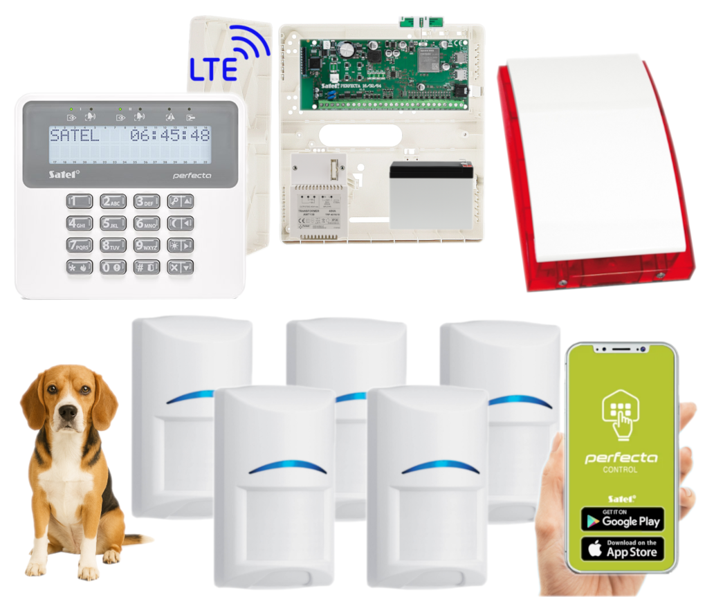 - 1x centrala alarmowa Satel Perfecta 16 LTE wraz z akcesoriami;
