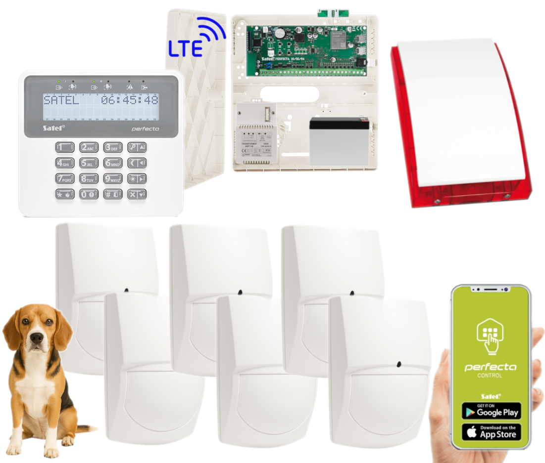 - 1x centrala alarmowa Satel Perfecta 16 LTE wraz z akcesoriami;
