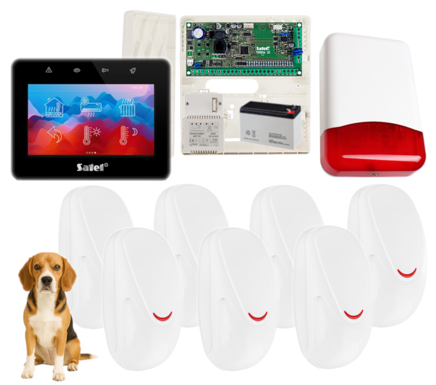 - przewodowa, wewnętrzna czujka ruchu AMC SMILE 21/P (odporna na zwierzęta domowe do 15 kg) - 7 szt;