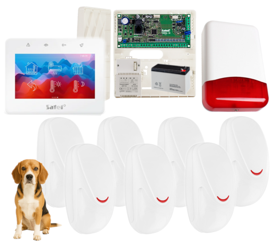 - przewodowa, wewnętrzna czujka ruchu AMC SMILE 21/P (odporna na zwierzęta domowe do 15 kg) - 7 szt;
