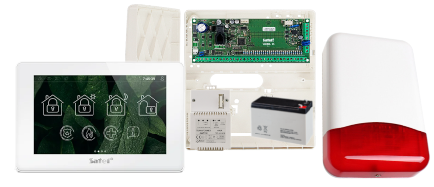 - 1x centrala alarmowa Satel Versa 15 wraz z akcesoriami;
