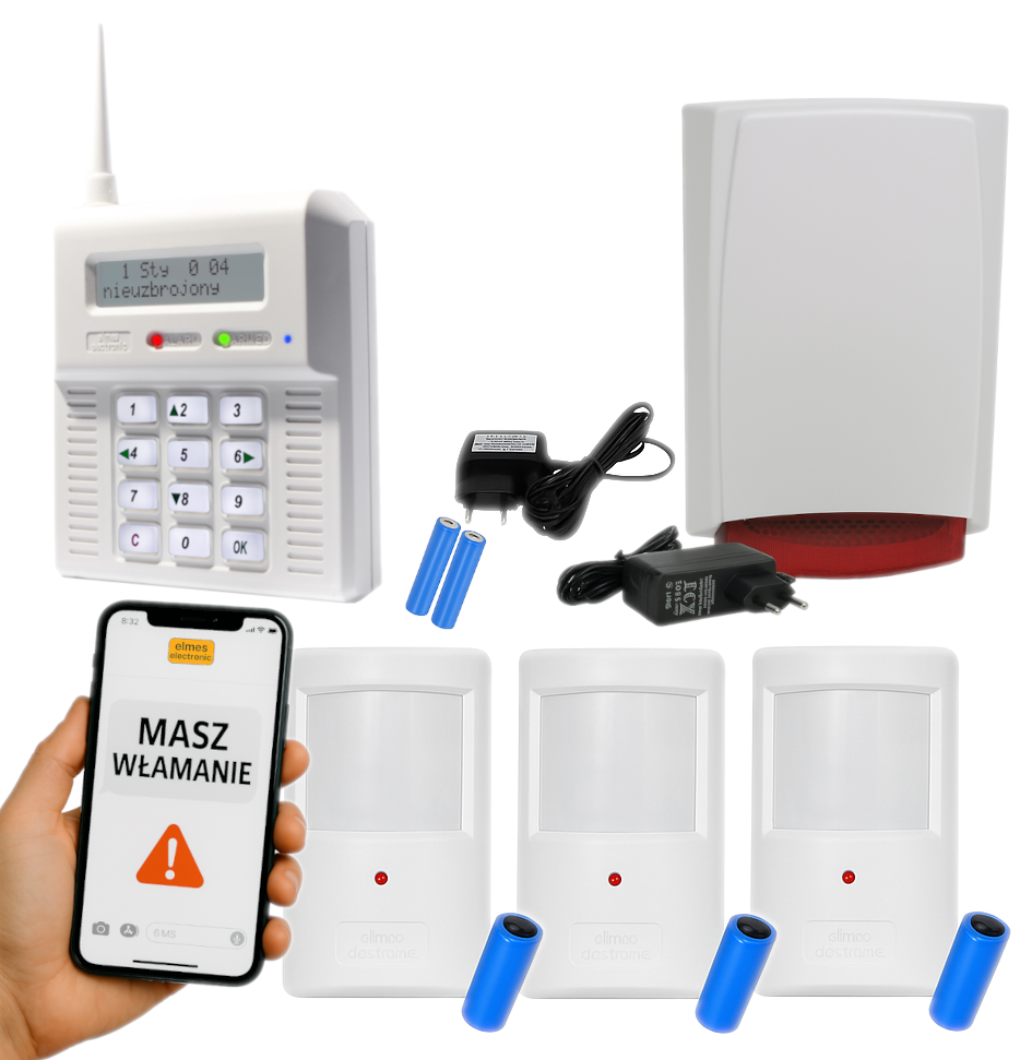 - 1x centrala alarmowa Elmes CB32GB wraz z akcesoriami;