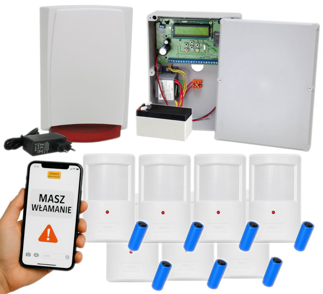 zestaw alarmowy Elmes oparty na centrali CBP32S to funkcjonalne i łatwe w obsłudze rozwiązanie dla domów, biur, sklepów, kiosków, warsztatów czy domków letniskowych. System łączy