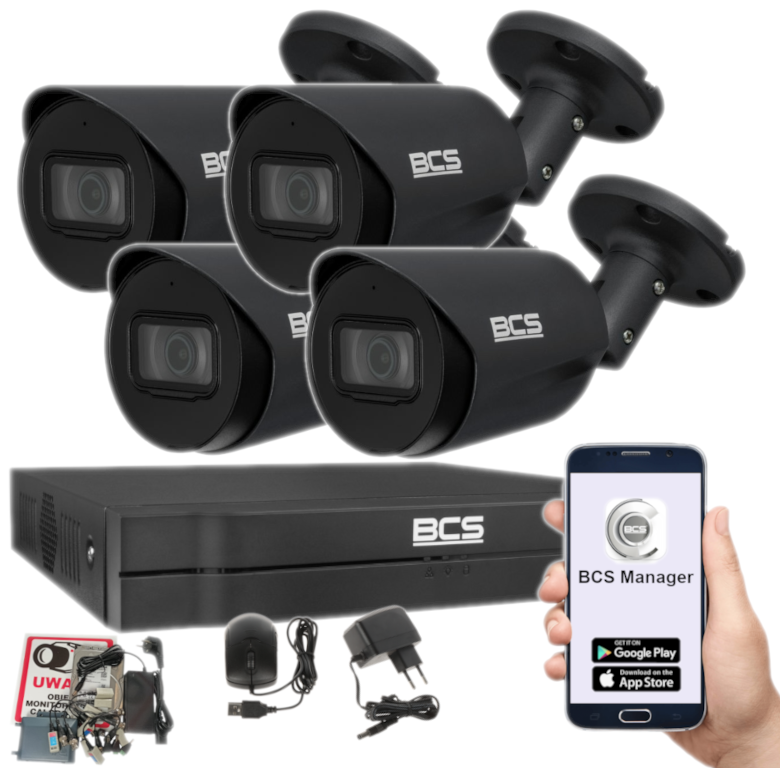 Zestaw jest łatwy w instalacji, co pozwala na samodzielny montaż. Ponadto, aplikacja mobilna BCS Manager pozwala na wygodny dostęp do obrazu z kamer na żywo oraz do zapisanych nagrań z dowolnego miejsca i o dowolnej porze.