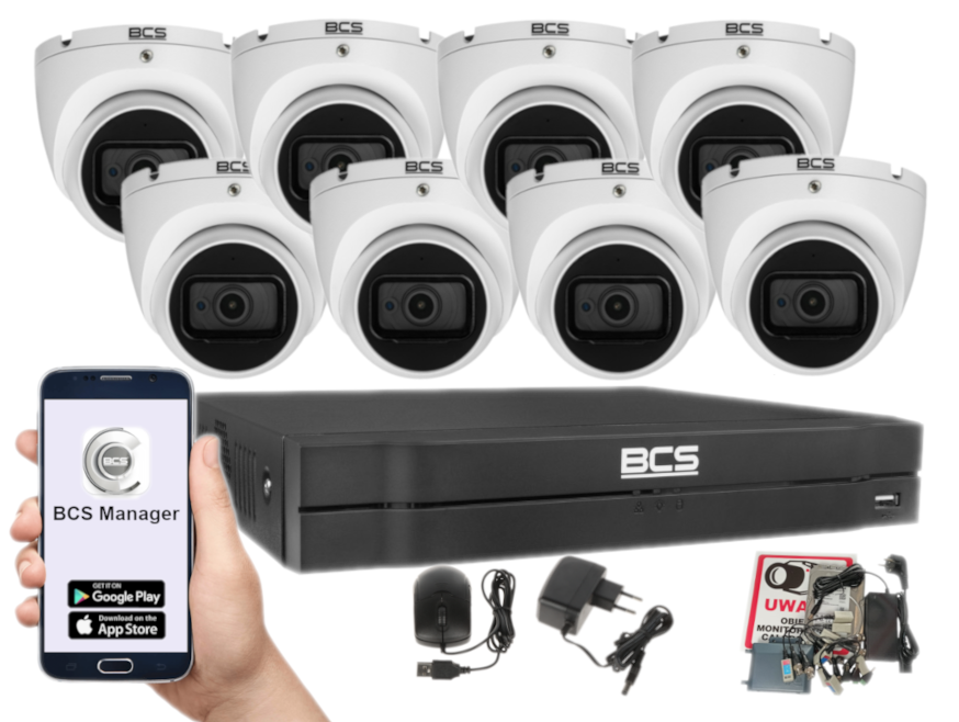 Zestaw jest łatwy w instalacji, co pozwala na samodzielny montaż. Ponadto, aplikacja mobilna BCS Manager pozwala na wygodny dostęp do obrazu z kamer na żywo oraz do zapisanych nagrań z dowolnego miejsca i o dowolnej porze.