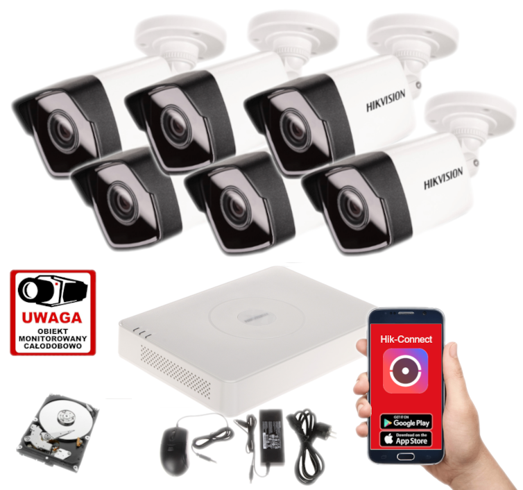 Zestaw jest łatwy w instalacji, co pozwala na samodzielny montaż. Dodatkowo, aplikacja mobilna Hik-Connect umożliwia wygodny dostęp do obrazu z kamer na żywo oraz do zapisanych nagrań z dowolnego miejsca i o dowolnej porze.