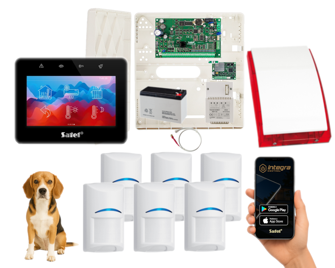- 1x centrala alarmowa Satel INTEGRA 32 wraz z akcesoriami;