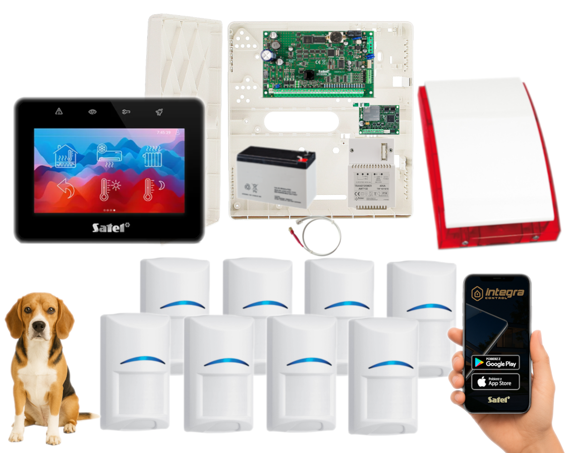 - 1x centrala alarmowa Satel INTEGRA 32 wraz z akcesoriami;