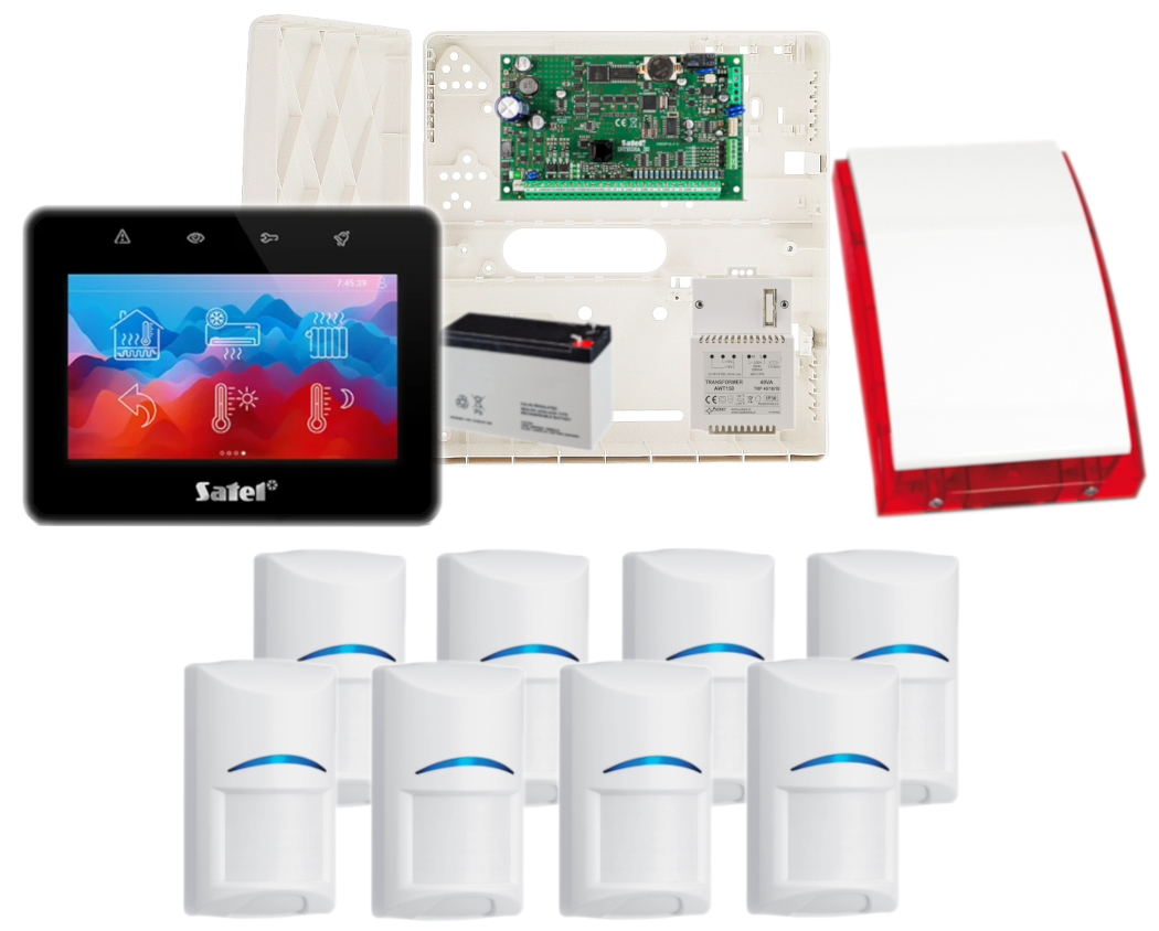 - 1x centrala alarmowa Satel INTEGRA 32 wraz z akcesoriami;