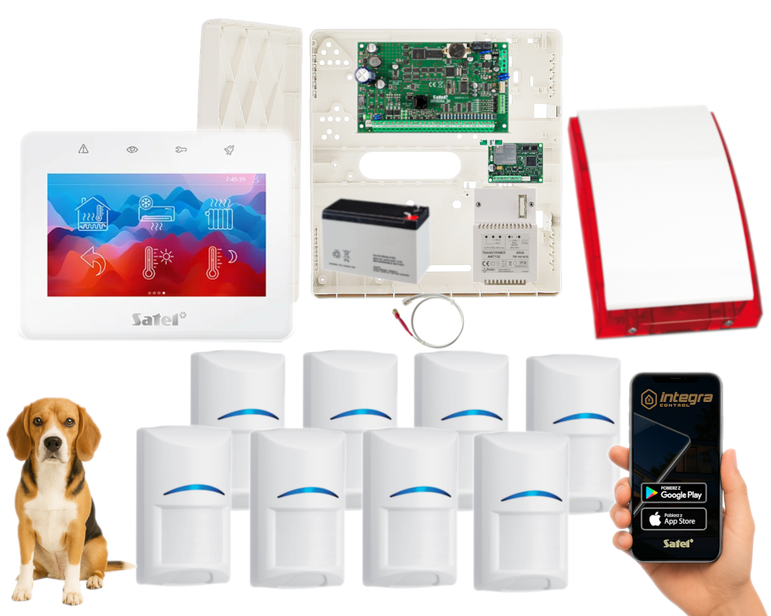 - 1x centrala alarmowa Satel INTEGRA 32 wraz z akcesoriami;