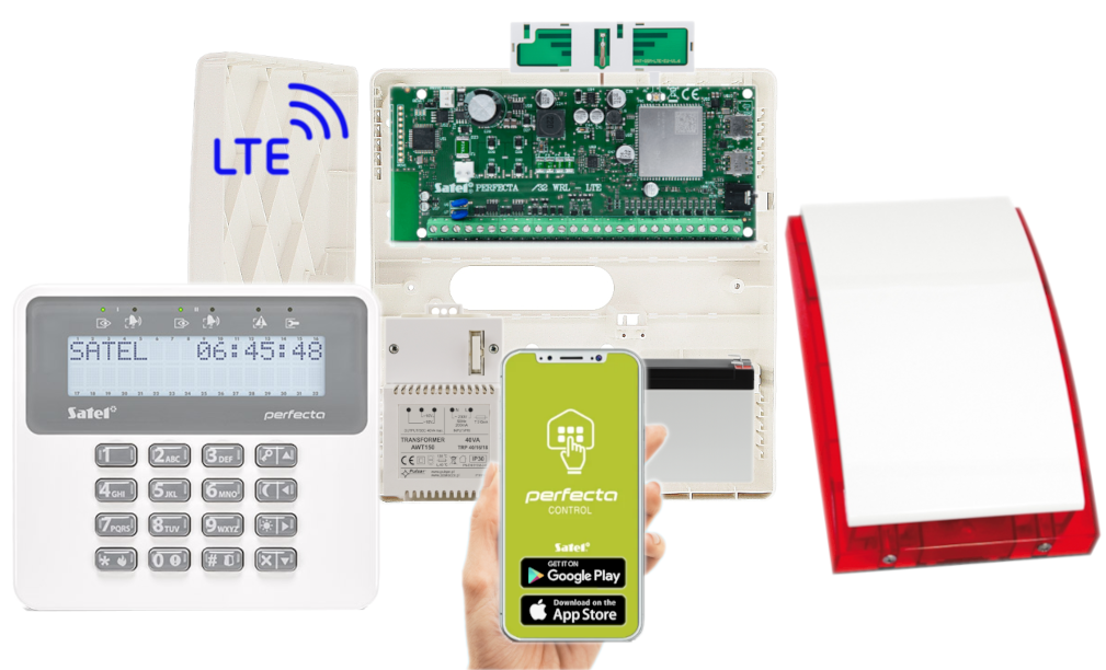 - 1x centrala alarmowa Satel Perfecta 32 LTE wraz z akcesoriami;