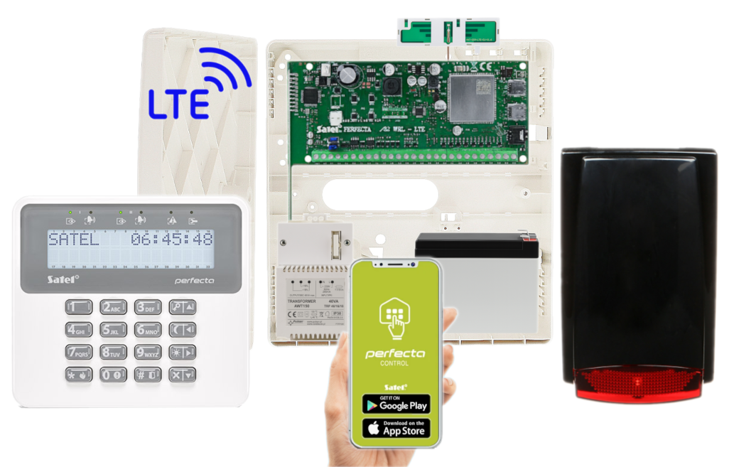 - 1x centrala alarmowa Satel Perfecta 32-WRL LTE wraz z akcesoriami;