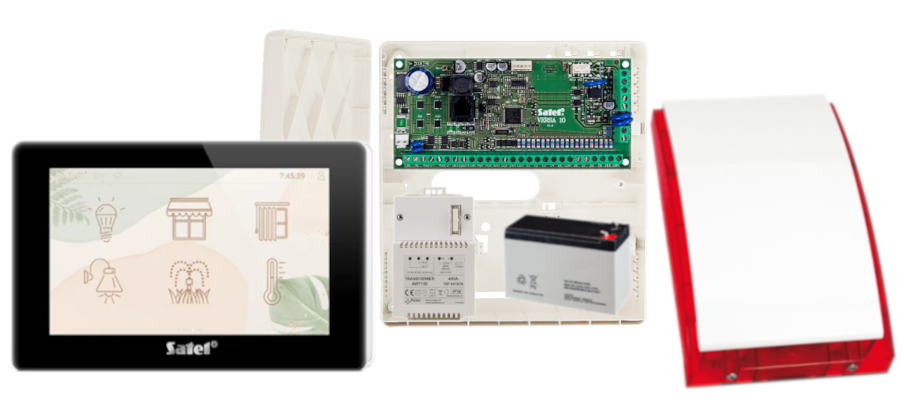 - 1x centrala alarmowa Satel Versa 10 wraz z akcesoriami;